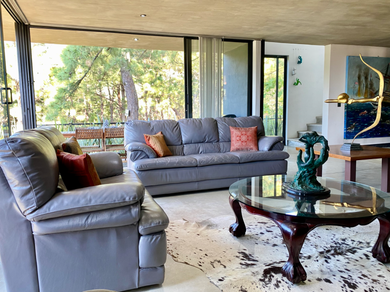 Diseñada para 6 personas y 2 mascotas, Casa Miró combina la serenidad del bosque con detalles contemporáneos. Cuenta con 3 recámaras con baño propio, cocina equipada, jardín con jacuzzi, balcón, terraza y estacionamiento para 2 autos.